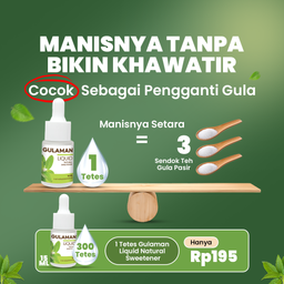 Gulaman Liquid Natural Sweetener merupakan pemanis cair dengan kombinasi Stevia alami dan Sukralosa yang memberikan rasa manis murni tanpa menambah kalori. Dirancang sebagai solusi praktis bagi Anda yang ingin tetap menikmati rasa manis tanpa khawatir terhadap asupan gula berlebih. Berukuran 15 ml, Gulaman Liquid Natural Sweetener, mudah dibawa ke mana pun, praktis digunakan untuk kopi, teh, jus, maupun olahan makanan favorit Anda. Pilihan cerdas untuk mendukung gaya hidup sehat dan keseimbangan kadar gula harian.Komposisi:Air, Sukralosa, Stevia Kenapa Pilih Gulaman Liquid Natural Sweetener?– Aman untuk Penderita Diabetes– Mendukung Program Diet dan Penurunan Berat Badan– Memberi Rasa Manis Alami Tanpa Aftertaste– Tanpa Kalori, Tanpa Karbohidrat Tersembunyi– Stabil pada Suhu Tinggi & Dingin– Praktis, Mudah Diteteskan di Mana Saja– Cocok untuk Semua Usia dan Gaya Hidup Petunjuk Penyajian:Tambahkan 1-2 tetes (sesuai selera) ke dalam teh, kopu, susu, makanan serta minuman lainnya. Cara Penyimpanan:Simpan pada suhu 30 derajat celcius dan terlindung dari sinar matahari. P-IRT 10736031000456-30Diproduksi oleh:CV GCC FOOD INDUSTRYTangerang 15520 – Indonesia