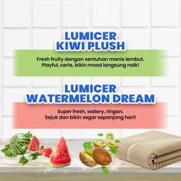 Nikmati momen mandi yang lebih menyenangkan dengan kombinasi Lumicer Kiwi Plush dan Lumicer Watermelon Dream Body Wash Goat Milk with Niacinamide.