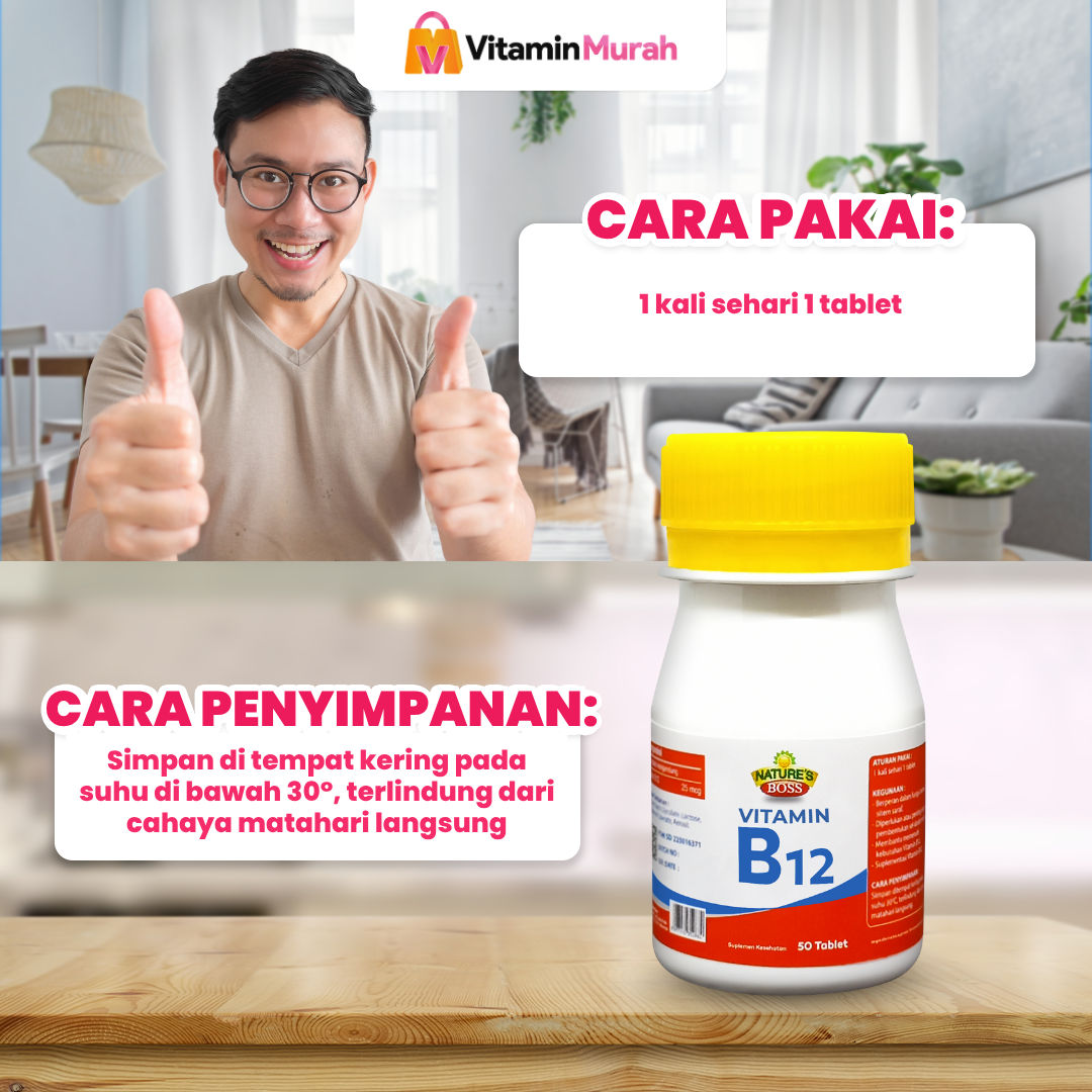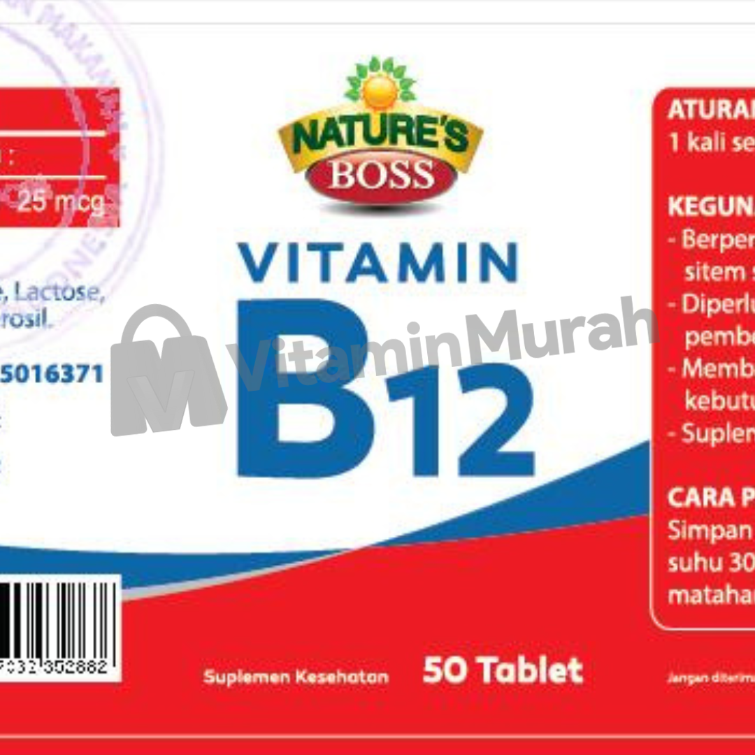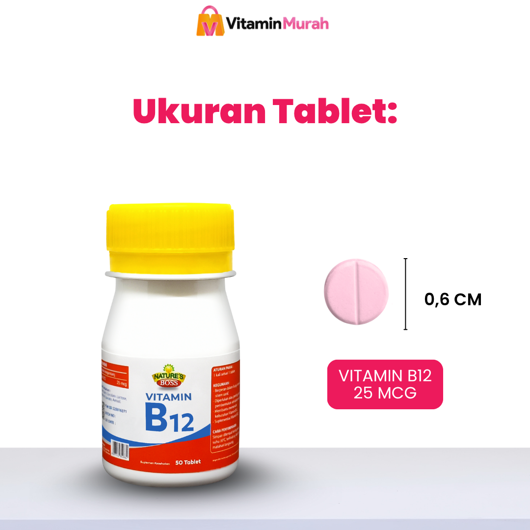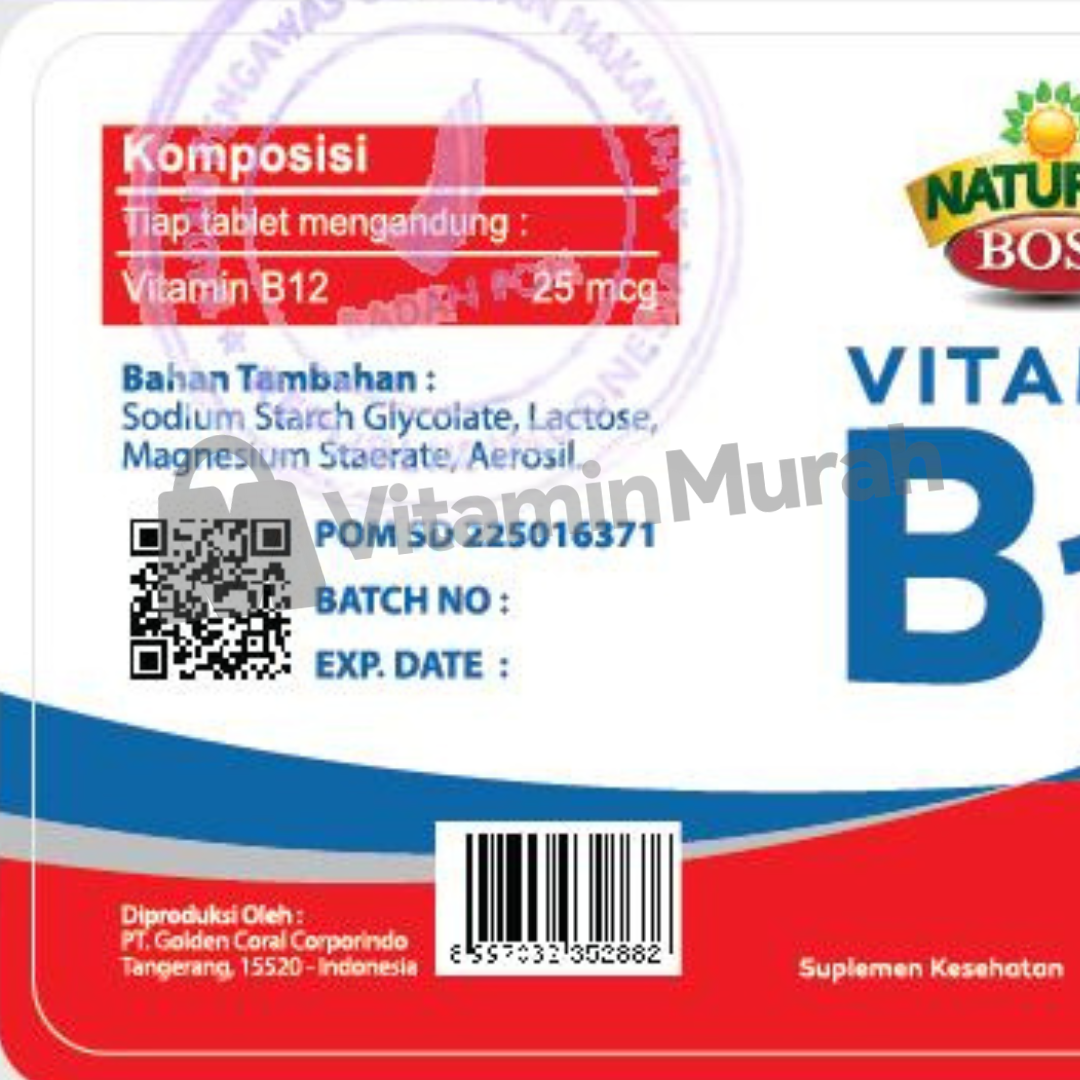 Nature’s Boss Vitamin B12 mengandung Vitamin B12 25 mcg.