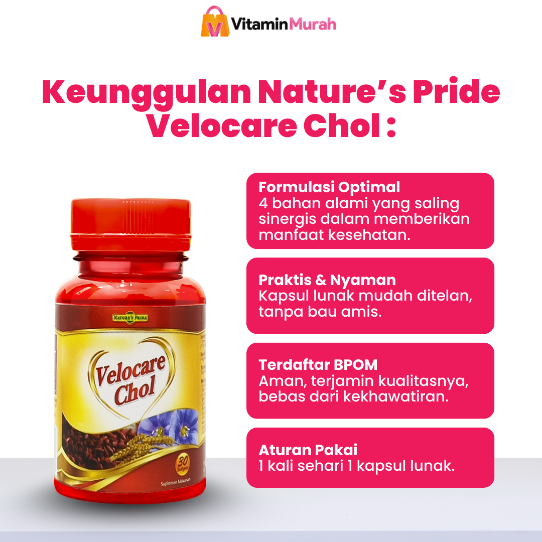 Nature’s Pride Velocare Chol diformulasikan dengan Fish Oil 500 mg.
