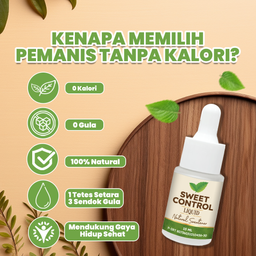 Sweet Control Liquid Natural Sweetener adalah pemanis cair tanpa kalori yang diformulasikan dari kombinasi Sukralosa dan Stevia alami. Didesain sebagai alternatif gula yang aman, praktis, dan tidak mengubah rasa alami makanan maupun minuman. Dengan kemasan kecil 15 ml, Sweet Control mudah dibawa dan digunakan di mana saja. Ideal untuk gaya hidup sehat dan pengendalian asupan gula harian Anda.