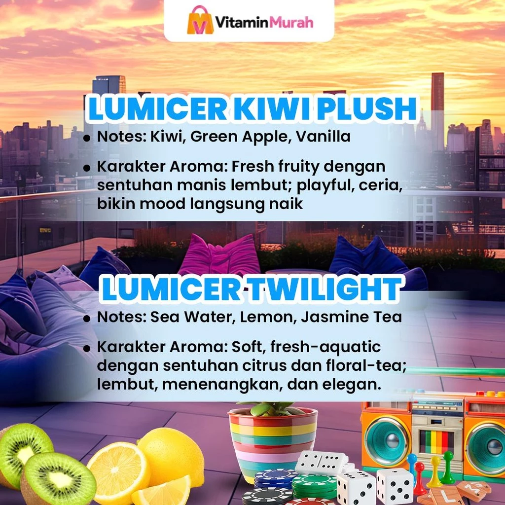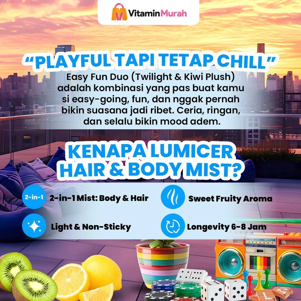 Twilight & Kiwi Lumicer Hair Body Mist (Buy 1 Get 1) 2 x 250 ml – Parfum Gentong Aroma Fresh Fruity Sweet Soft Lemon Kiwi Parfum Aroma Buah Pria Wanita Unisex Wangi Tahan Lama Halal