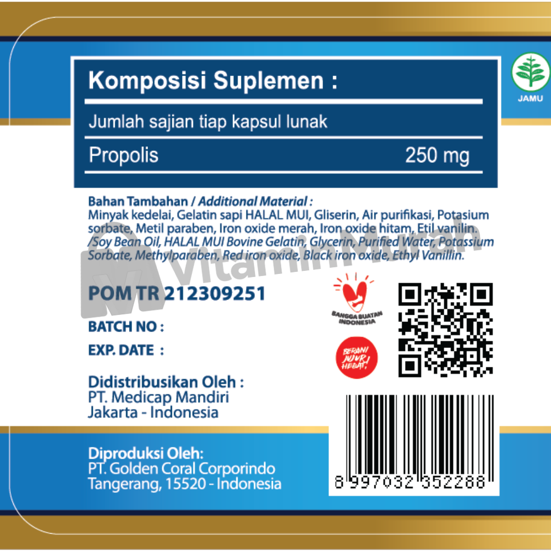 – Menjaga Daya Tahan Tubuh. Propolis membantu memperkuat sistem imun dengan meningkatkan produksi antibodi dan melawan peradangan, sehingga tubuh lebih tahan terhadap infeksi.