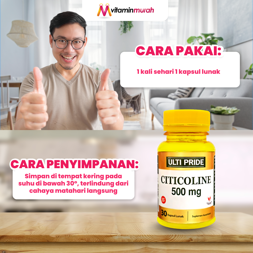 Ultipride Citicoline diformulasikan dengan Citicoline 500 mg dan cukup dikonsumsi 1 x sehari. Citicoline adalah suplemen yang bermanfaat untuk mendukung kesehatan otak dan saraf.