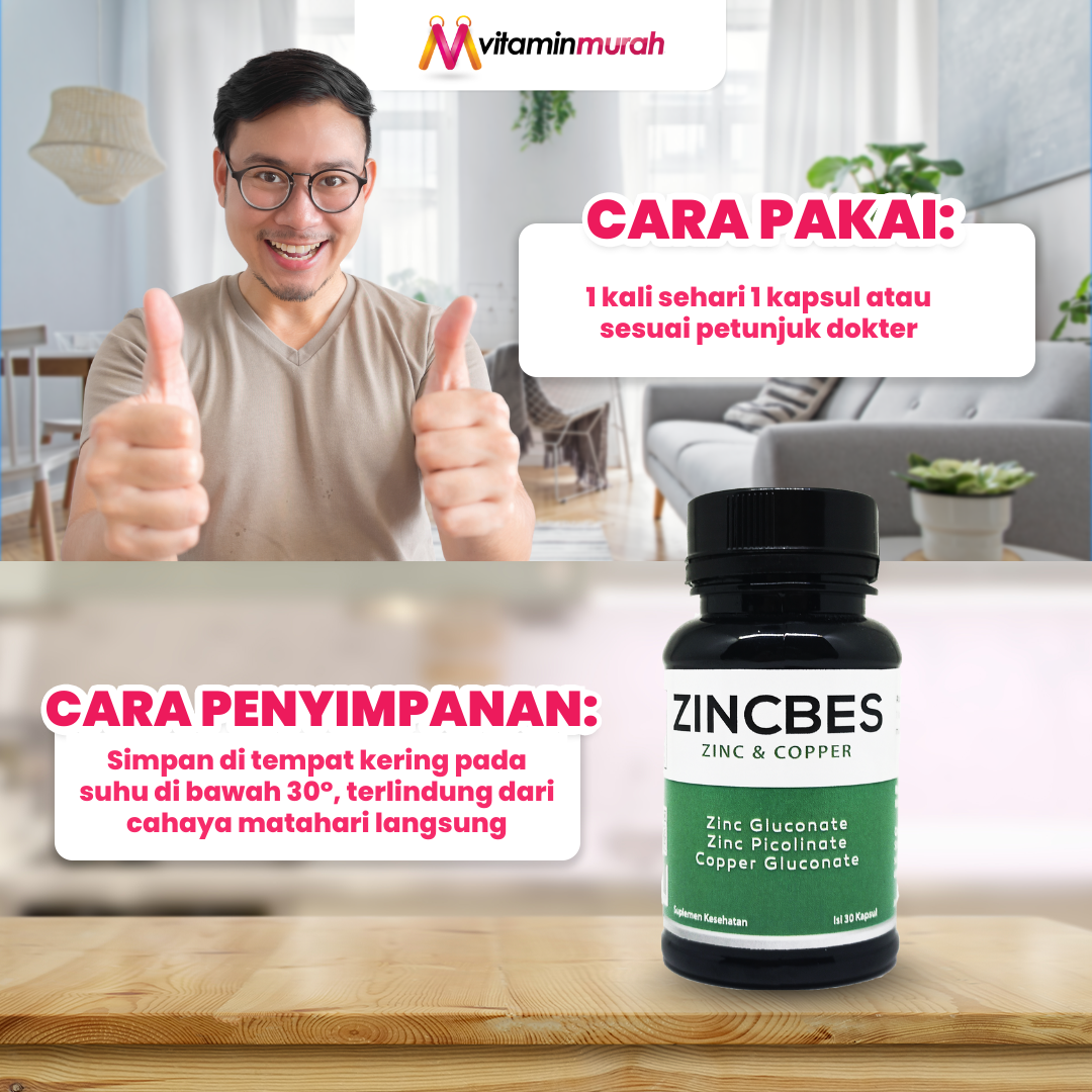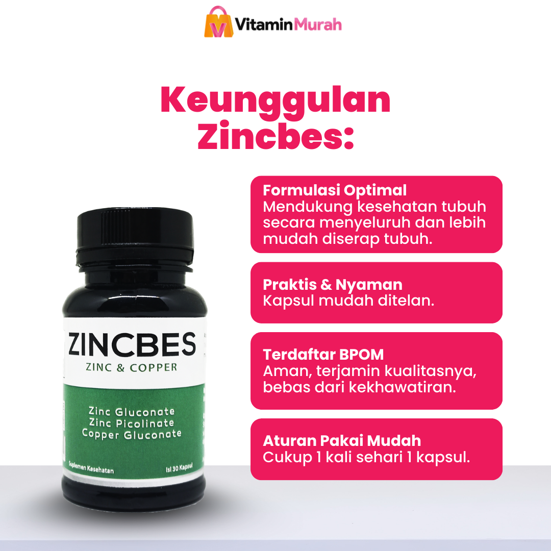 Zincbes mengandung Zinc Gluconate 50 mg, Zinc Picolinate 50 mg dan Copper Gluconate 8 mg.